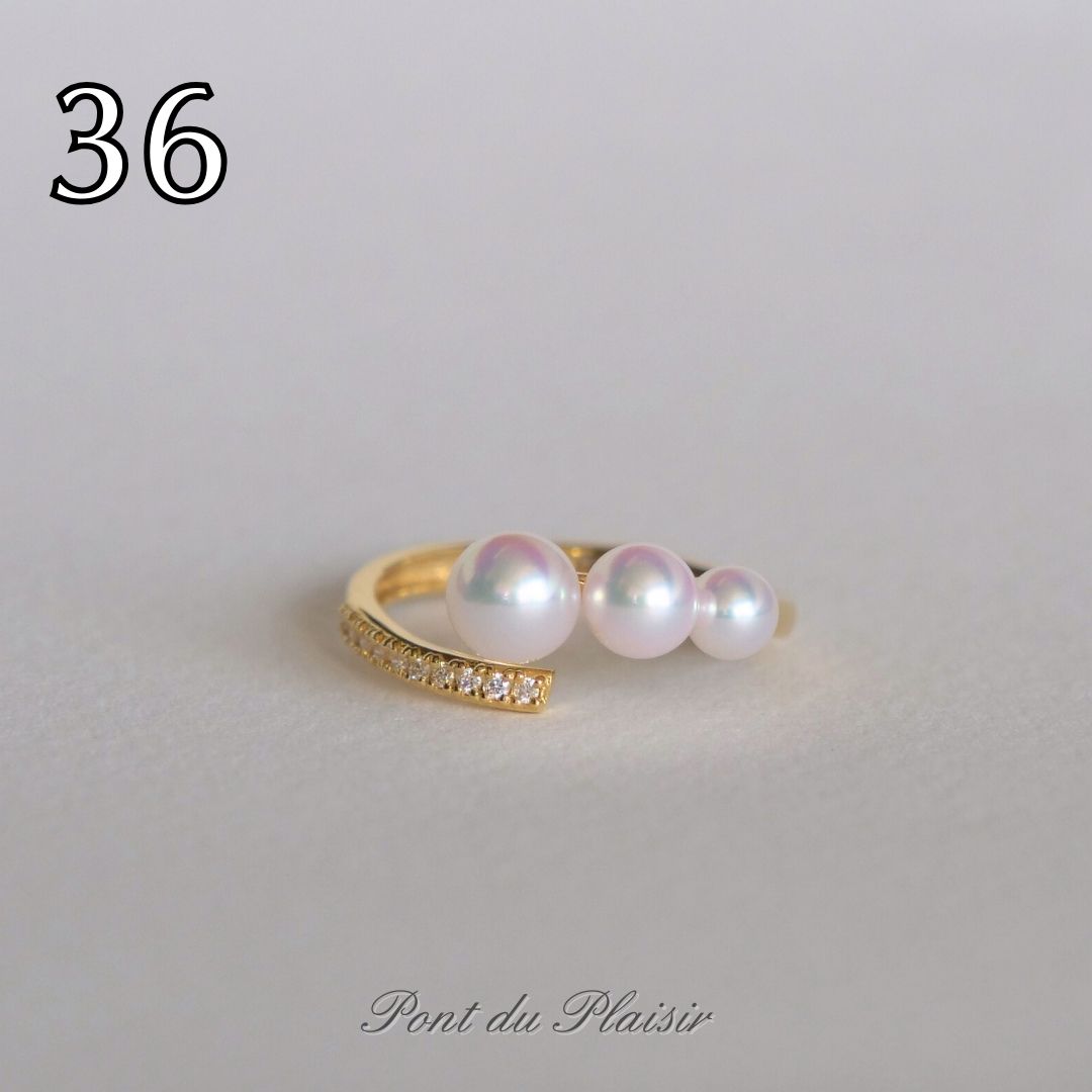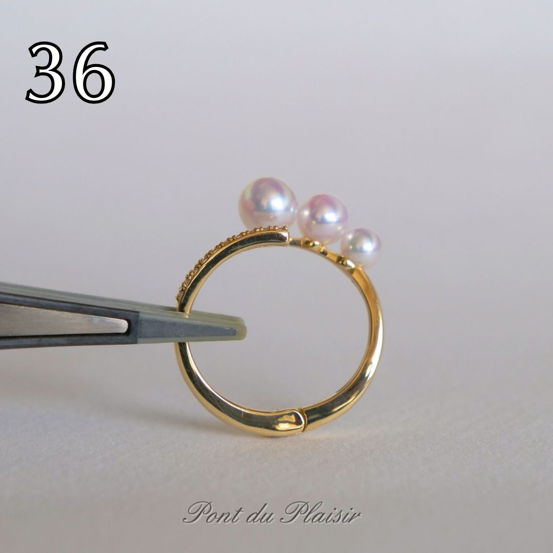 ㊱K18YG製アコヤ真珠ピアリングリング(#8-#18)