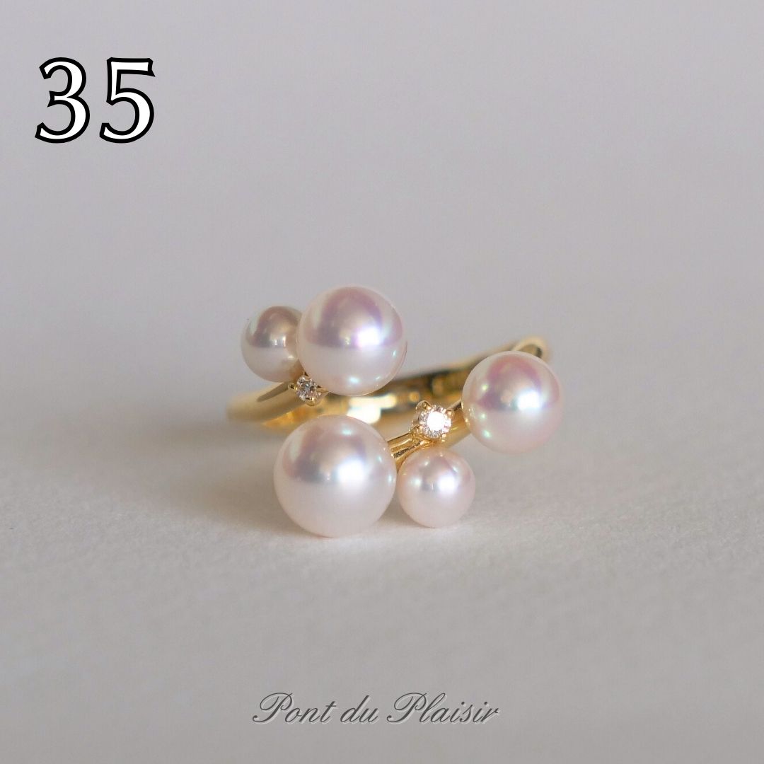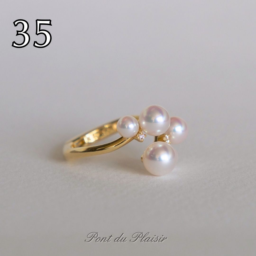 ㉟K18YG製アコヤ真珠ピアリングリング(#8-#18)