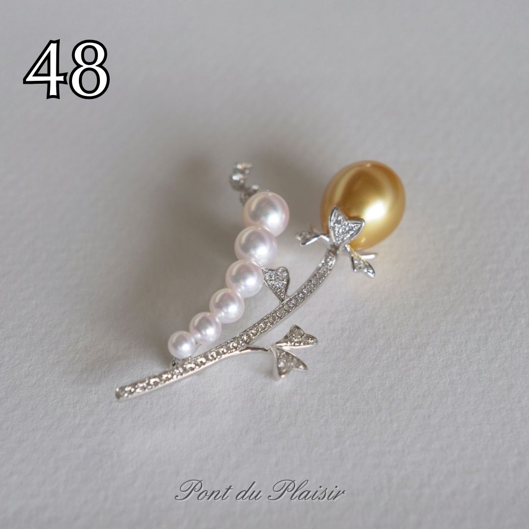 ㊽K18WG製アコヤ/白蝶ゴールデンブローチ