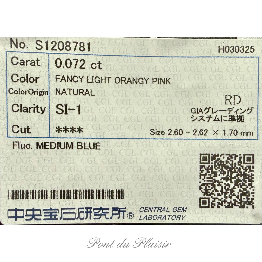 - 天然ピンクダイアモンド 0.072ct/FLOP/SI1